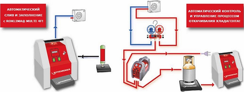 Преимущества автоматической манометрической станции для заправки кондиционеров Rothenberger Roklima Multi 4F: