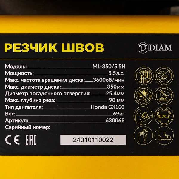 Цена и технические характеристики бензинового резчика швов Diam ML-350/5.5H: