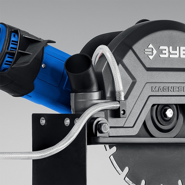 - Эффективное пылеудаление благодаря возможности подключения пылесоса (Ø подключения 40 мм, совместимо с пылесосами ЗУБР серии ПУ)