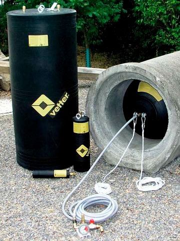 Маслостойкая химостойкая цилиндрическая пневмозаглушка для труб Vetter RDK 60/120 CR (Веттер РДК 60/120 ЦР) – многоразмерная пневматическая заглушка для перекрытия трубопроводов Ø 600 – 1200 мм (24" – 48") в тех случаях, когда необходима повышенная устойчивость, например, против масел и топливных материалов на нефтеперегонных заводах в нефтепроводах или трубах, предполагающих контакт с маслом и консистентной смазкой.