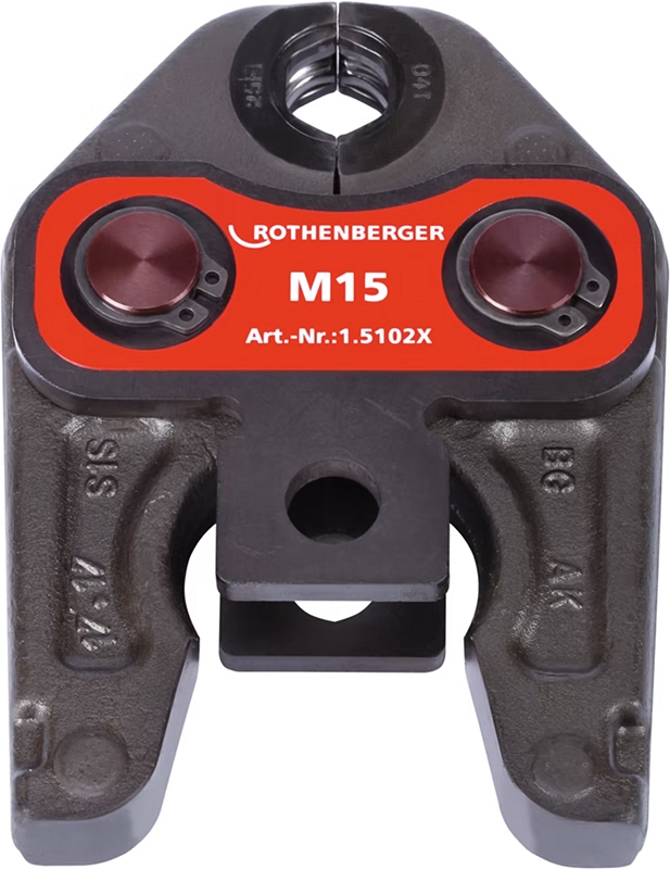 Пресс-клещи Rothenberger Standard M15 (Ротенбергер Стандарт М15) проверенного качества, ориентированные на пресс-фитинговые и трубные системы обжима медных, нержавеющих стальных труб и труб из цветных металлов Ø 15 мм различных производителей. Предназначены для аккумуляторных и электрических гидравлических радиальных прессов Rothenberger Romax 4000 / 3000 AC / AC Eco.