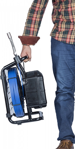 - Проталкиваемый кабель Ø 5,2 мм × 30 м из стекловолокна со встроенным счетчиком расстояния намотан на барабан из нержавейки