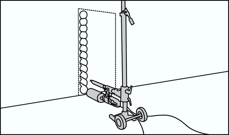 – Во время бурения пола устройство фиксируется с помощью опоры, которая устанавливается напротив потолка
