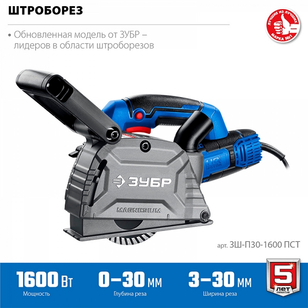 Преимущества штробореза Зубр Профессионал ЗШ-П30-1600 ПСТК: