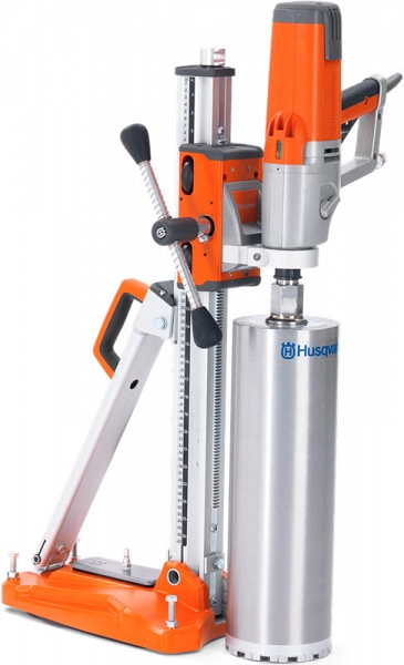 Стойка для алмазного бурения Husqvarna DS 150 (Хускварна ДС 150) – самый легкий универсальный стенд, является идеальным выбором, когда необходима станина для небольших работ, требующих быстрой установки, например, бурения небольших каналов и отверстий Ø до 150 мм в стенах, полах и потолках, разных материалах, включая армированный бетон, кирпич и другие строительные материалы.