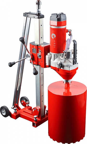 Установка алмазного бурения Cardi 805 (Карди 805) предназначена для сверления отверстий в бетоне, железобетоне Ø 100 – 600 мм, под углом 0° – 75°, с подачей воды.